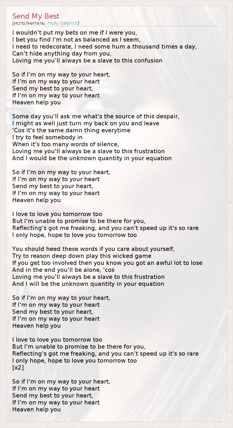 А как ты думаешь, о чем песня "Send My Best" ?