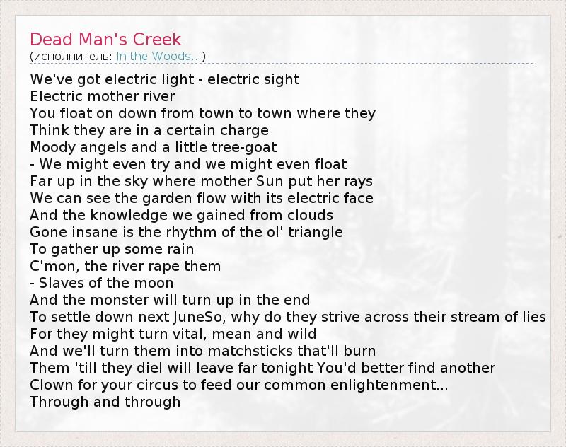 А как ты думаешь, о чем песня "Dead Man's Creek" ?