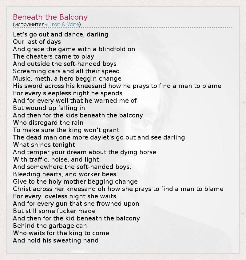 А как ты думаешь, о чем песня "Beneath the Balcony" ?
