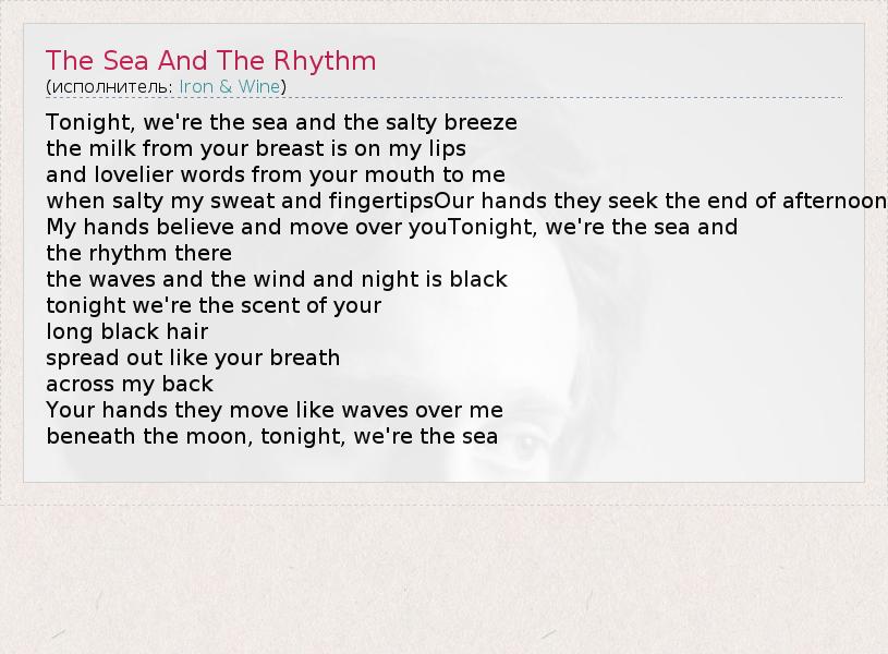 А как ты думаешь, о чем песня "The Sea And The Rhythm" ?