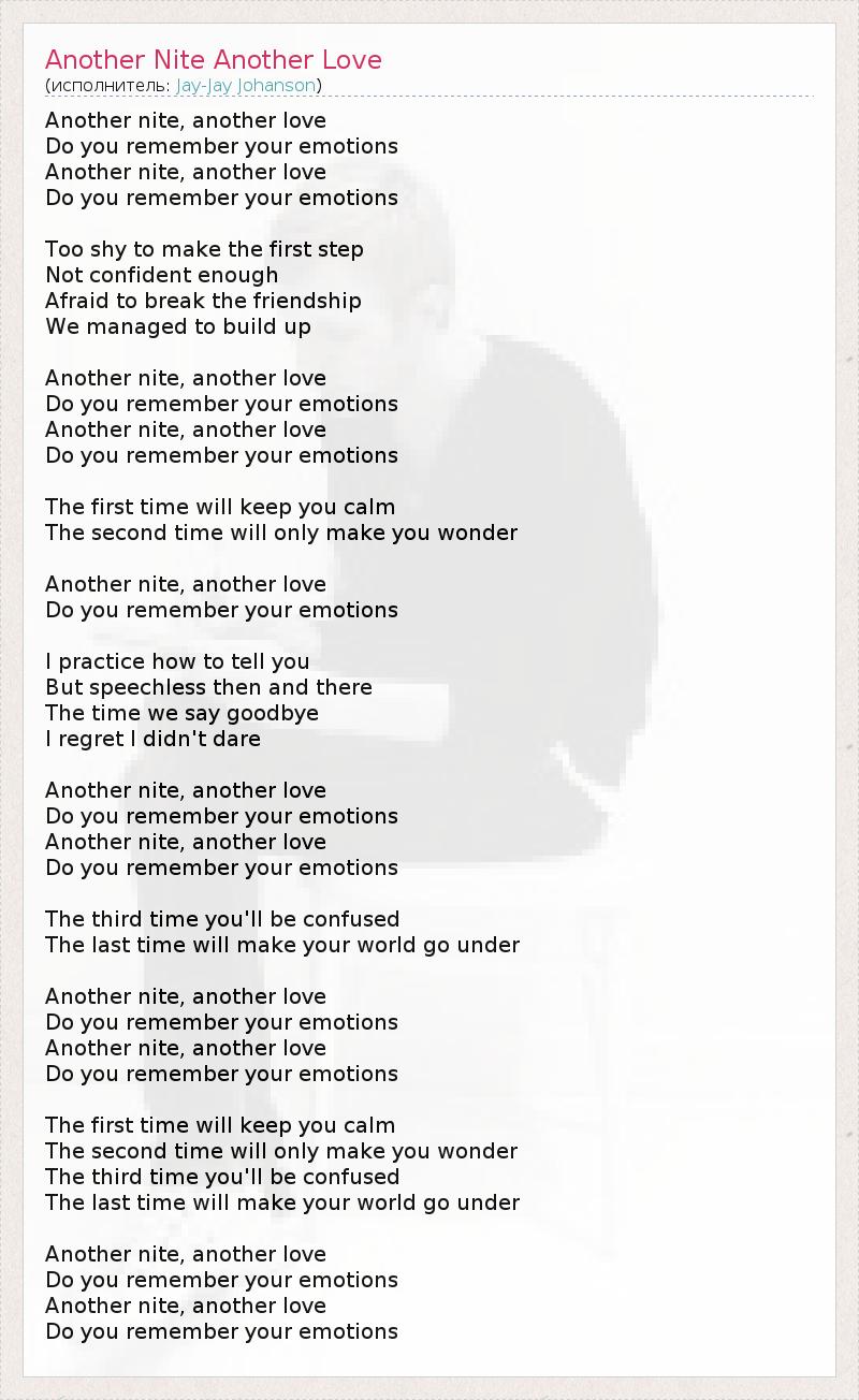 А как ты думаешь, о чем песня "Another Nite Another Love" ?
