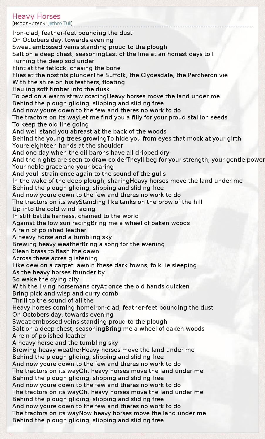 А как ты думаешь, о чем песня "Heavy Horses" ?