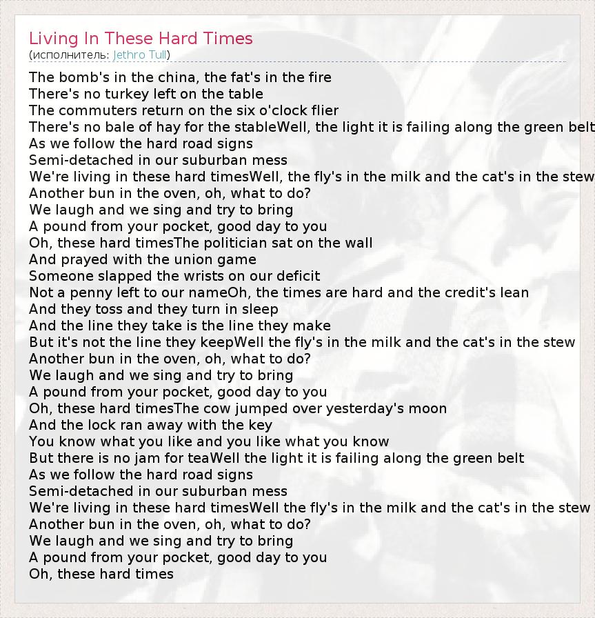 А как ты думаешь, о чем песня "Living In These Hard Times" ?