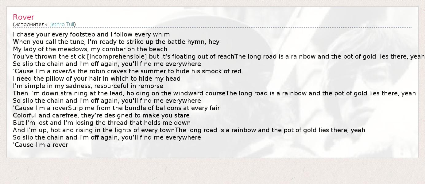 А как ты думаешь, о чем песня "Rover" ?