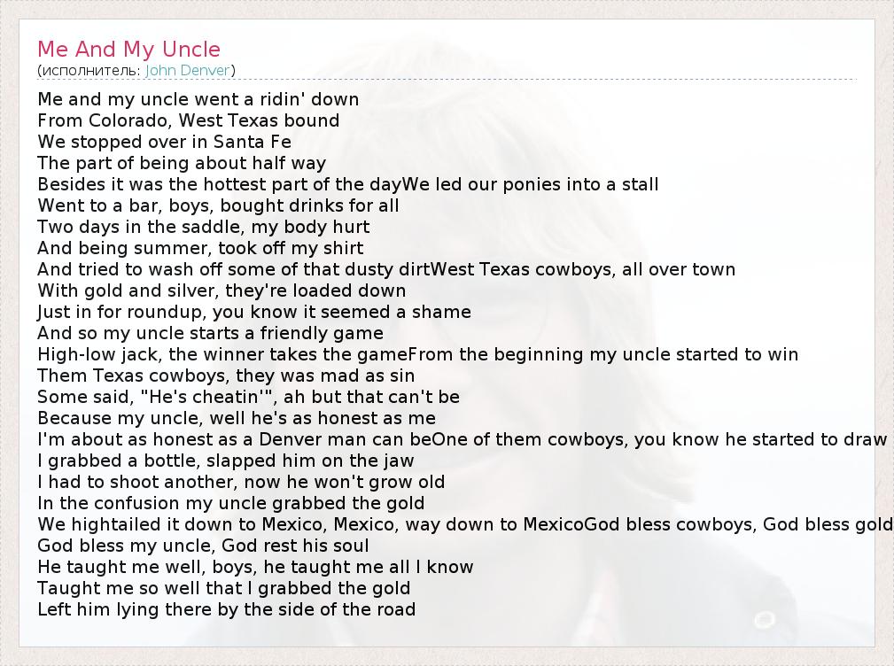 А как ты думаешь, о чем песня "Me And My Uncle" ?
