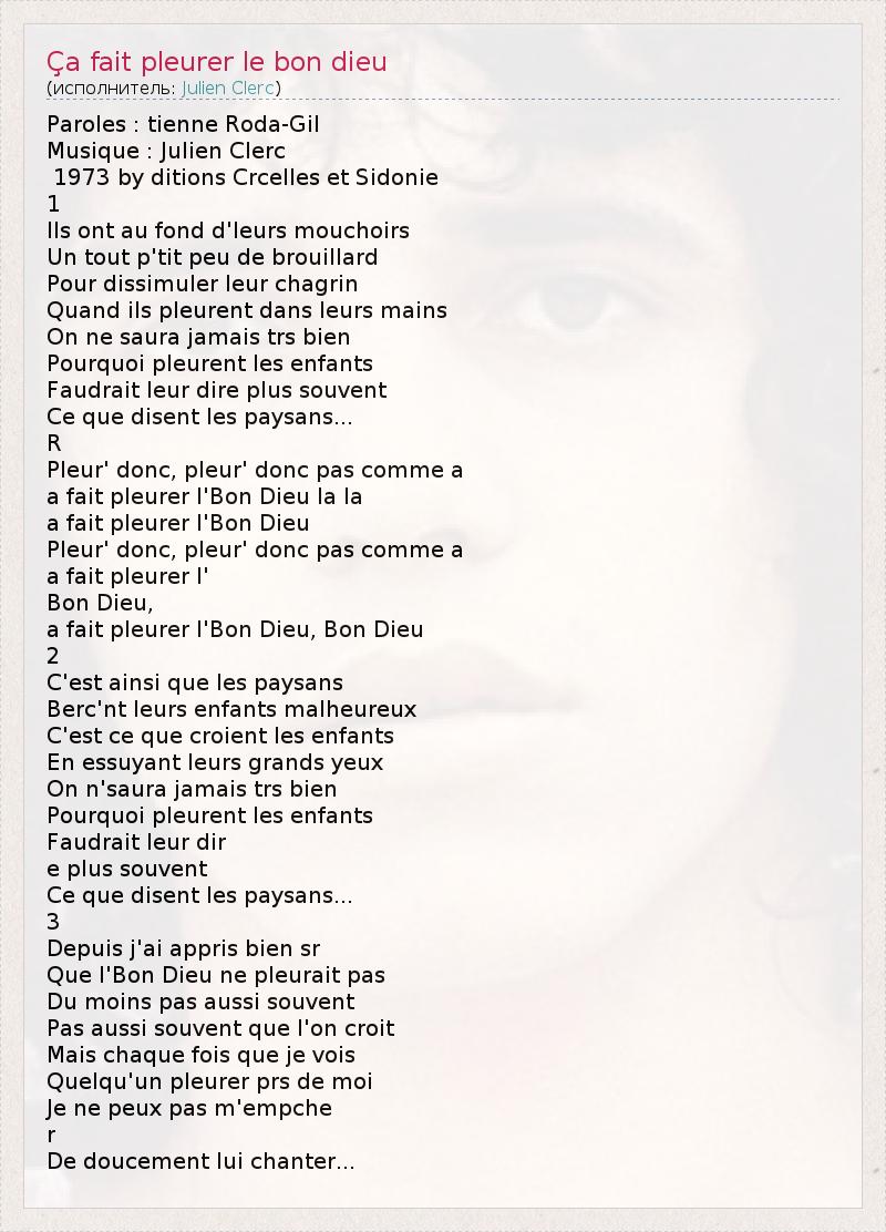 ГлавнаяИсполнителиJulien ClercÇa fait pleurer le bon dieu