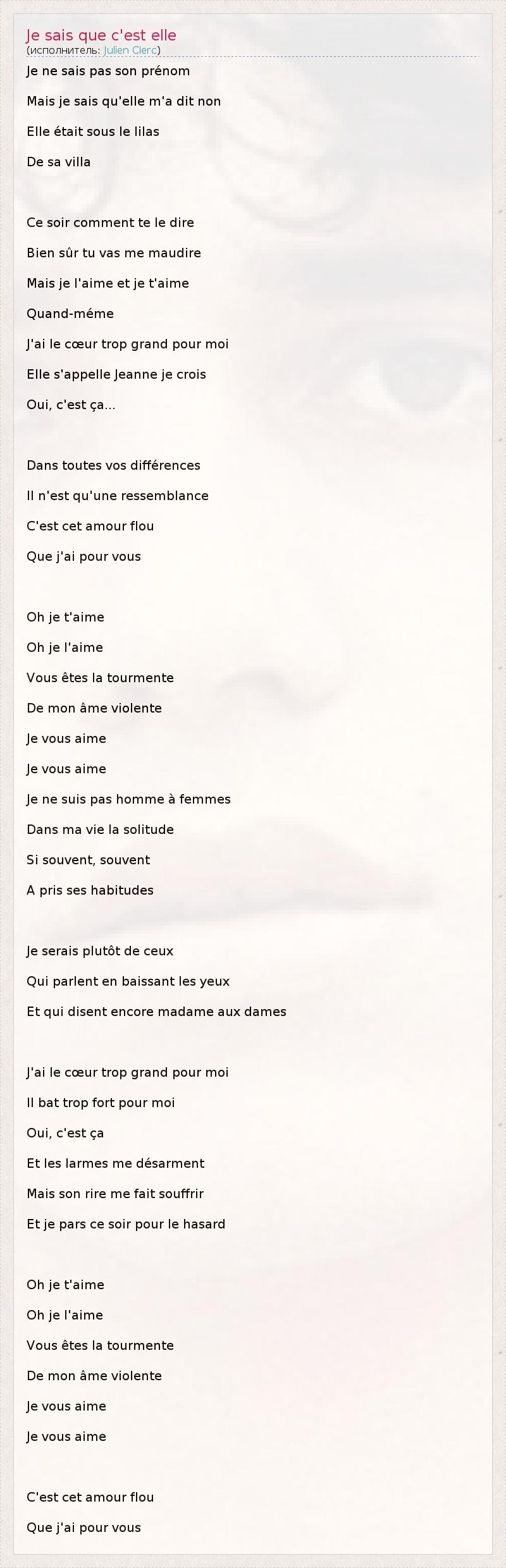 А как ты думаешь, о чем песня "Je sais que c'est elle" ?