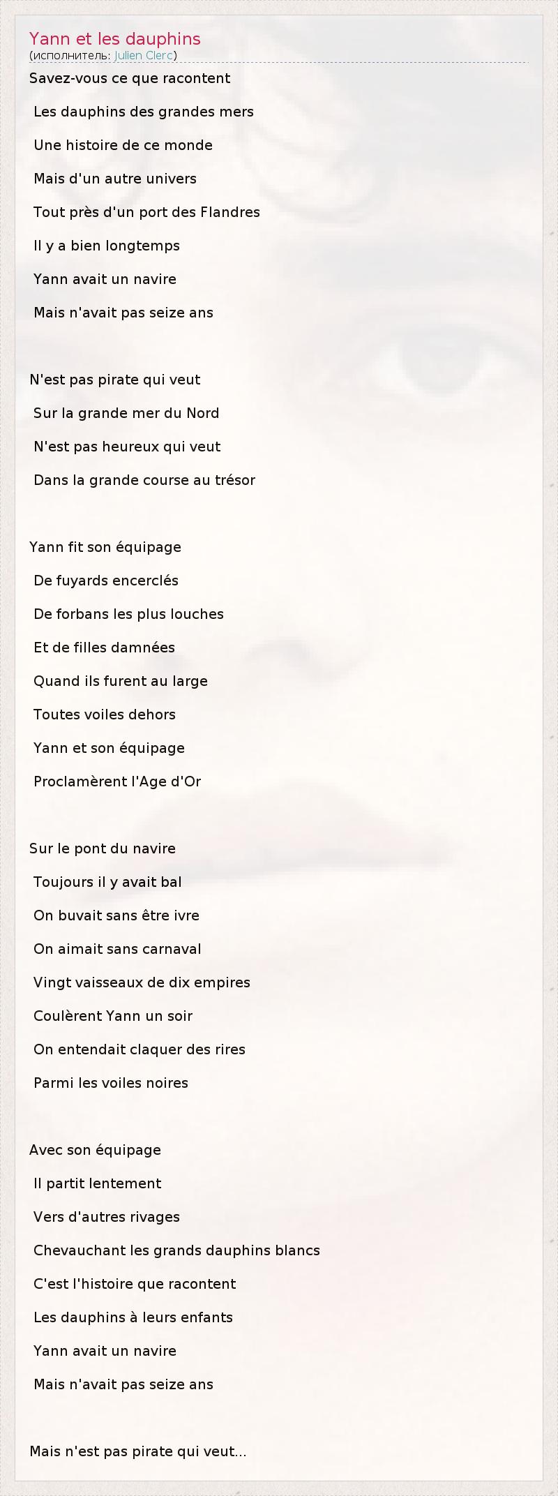 А как ты думаешь, о чем песня "Yann et les dauphins" ?