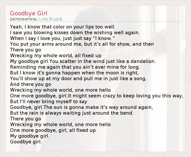 А как ты думаешь, о чем песня "Goodbye Girl" ?