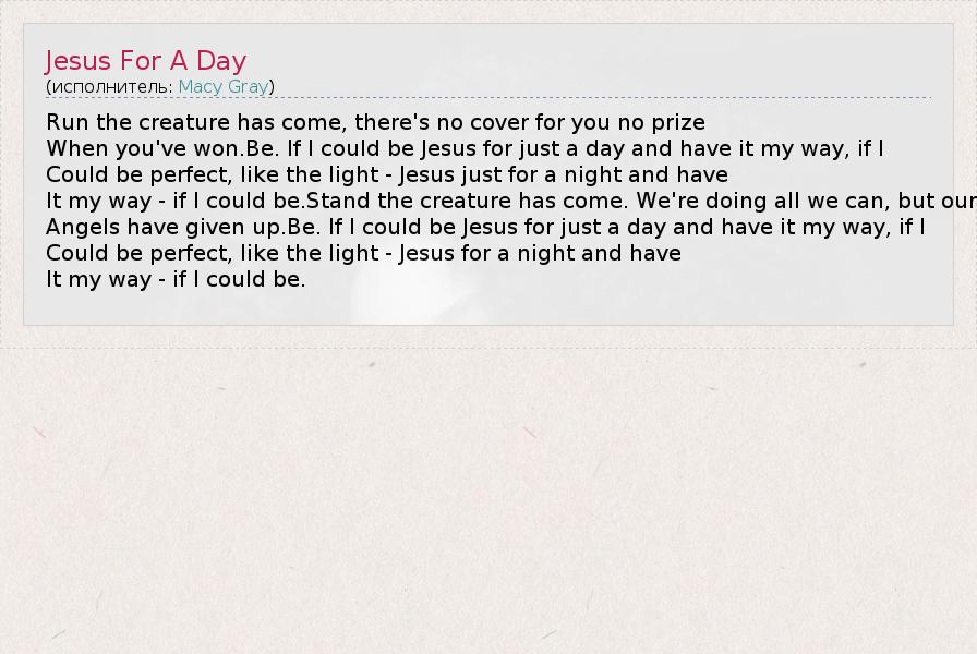А как ты думаешь, о чем песня "Jesus For A Day" ?