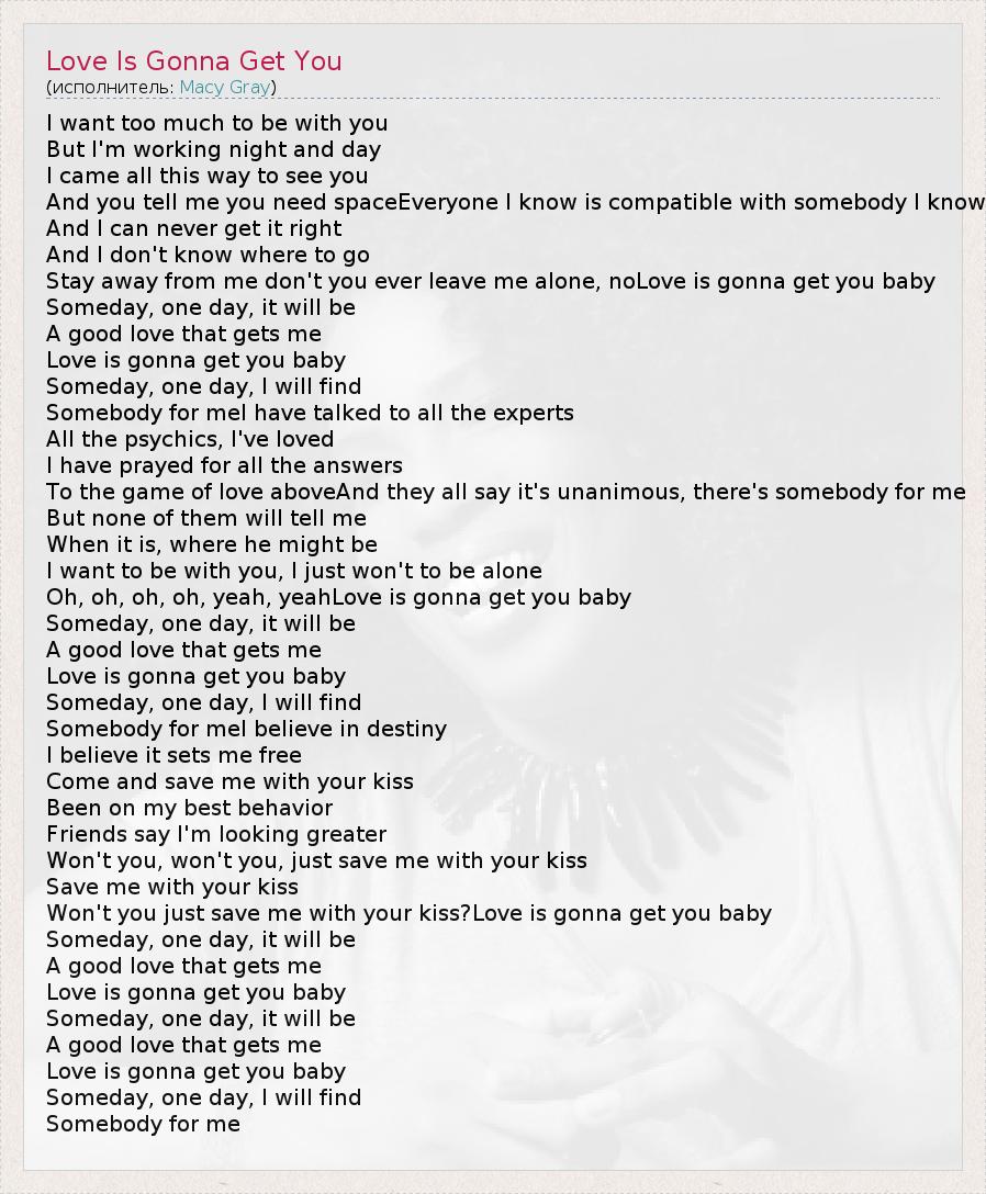 ГлавнаяИсполнителиMacy GrayLove Is Gonna Get You