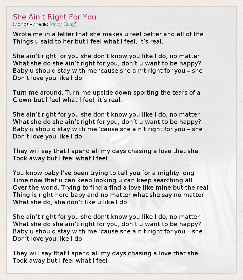 ГлавнаяИсполнителиMacy GrayShe Ain't Right For You
