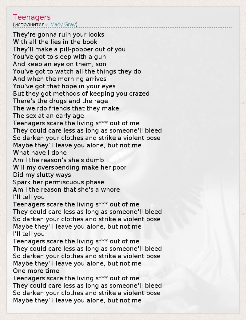 А как ты думаешь, о чем песня "Teenagers" ?