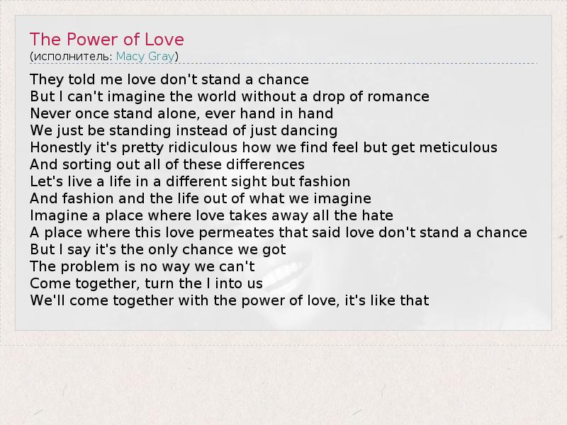 А как ты думаешь, о чем песня "The Power of Love" ?