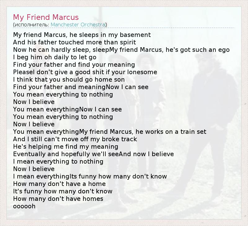 А как ты думаешь, о чем песня "My Friend Marcus" ?