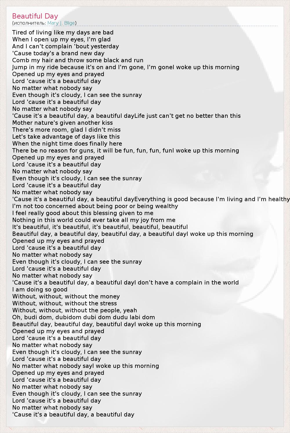 Beautiful day, a beautiful day, beautiful day, a beautiful dayI woke up this morning