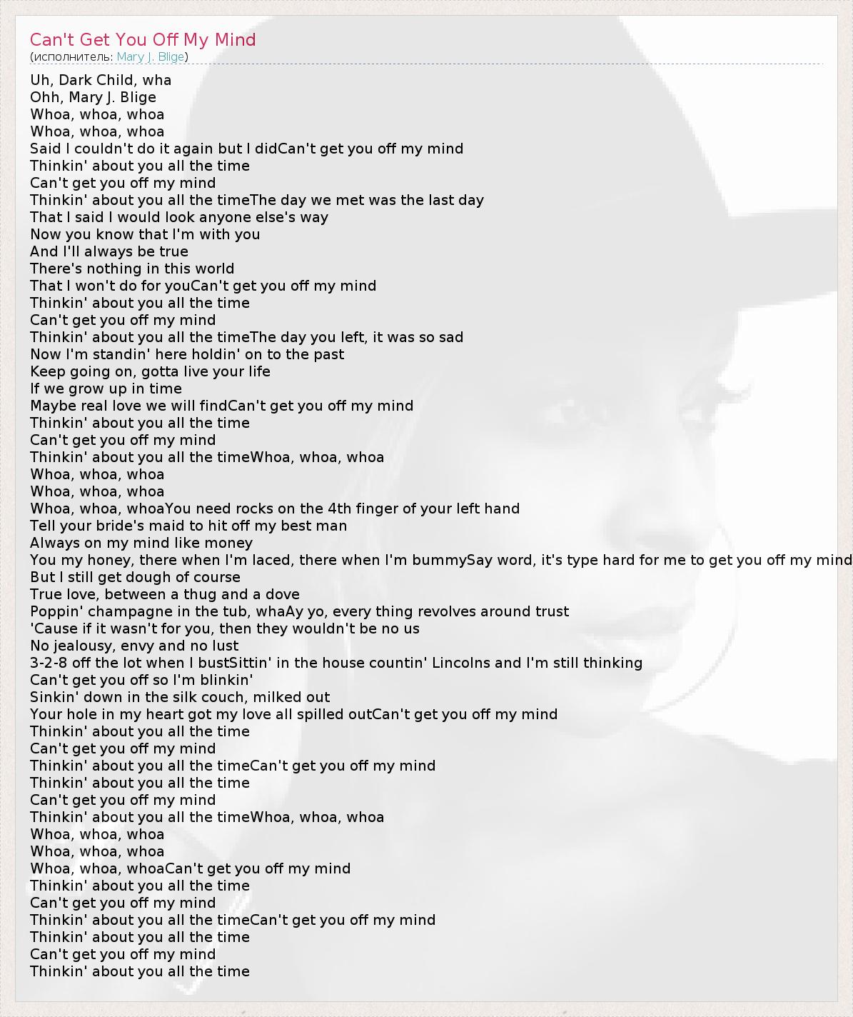 ГлавнаяИсполнителиMary J. BligeCan't Get You Off My Mind