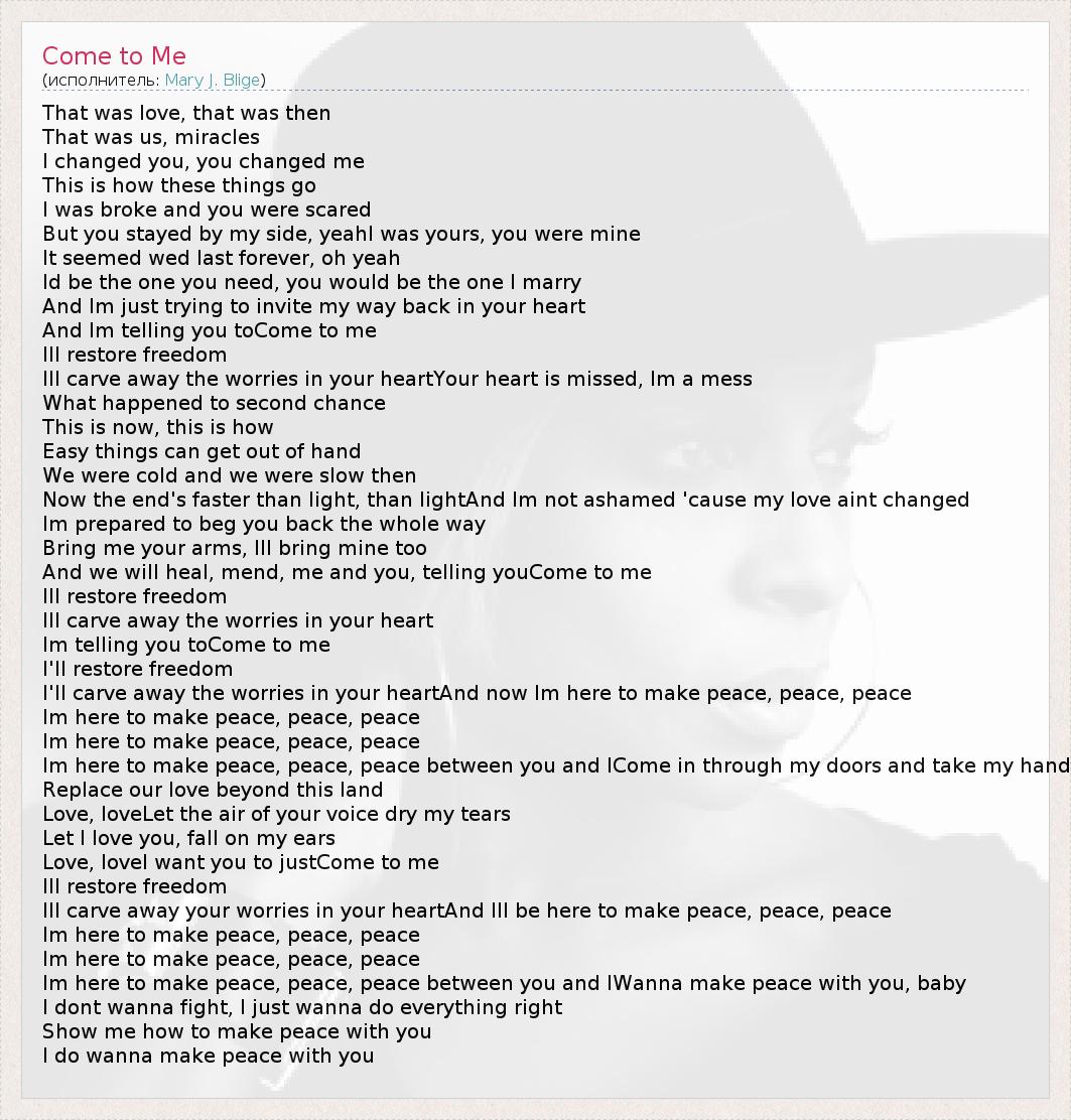 Im here to make peace, peace, peace between you and ICome in through my doors and take my hand