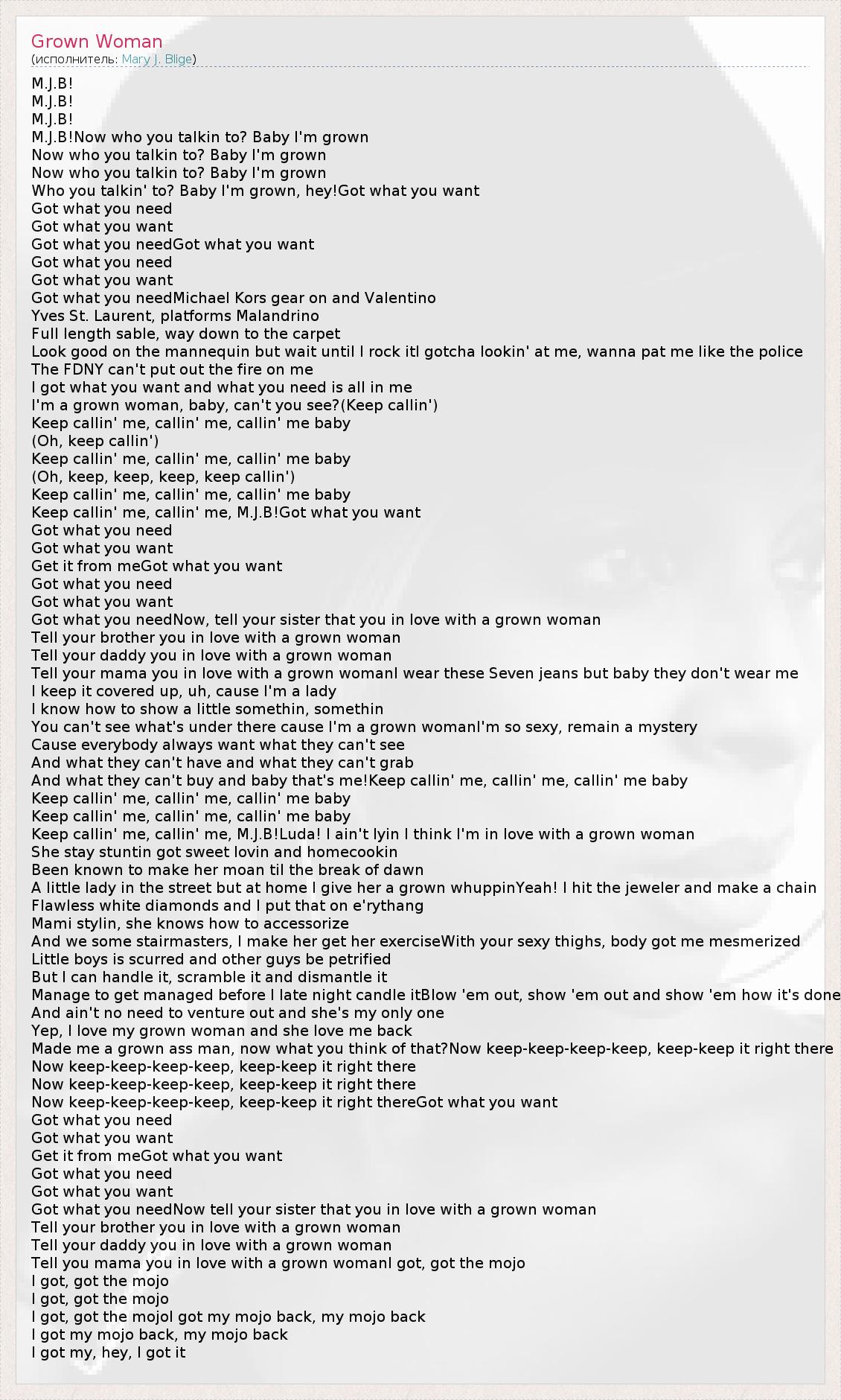 А как ты думаешь, о чем песня "Grown Woman" ?
