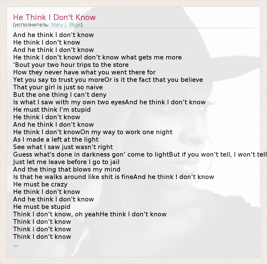 А как ты думаешь, о чем песня "He Think I Don't Know" ?