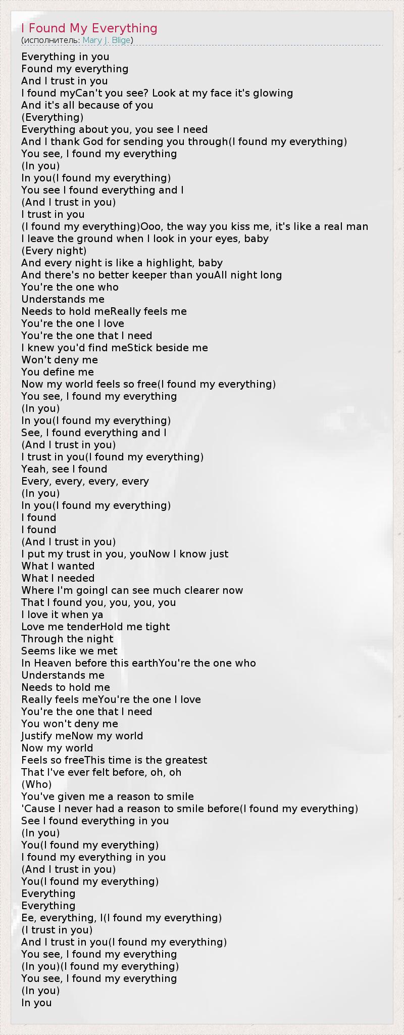 А как ты думаешь, о чем песня "I Found My Everything" ?