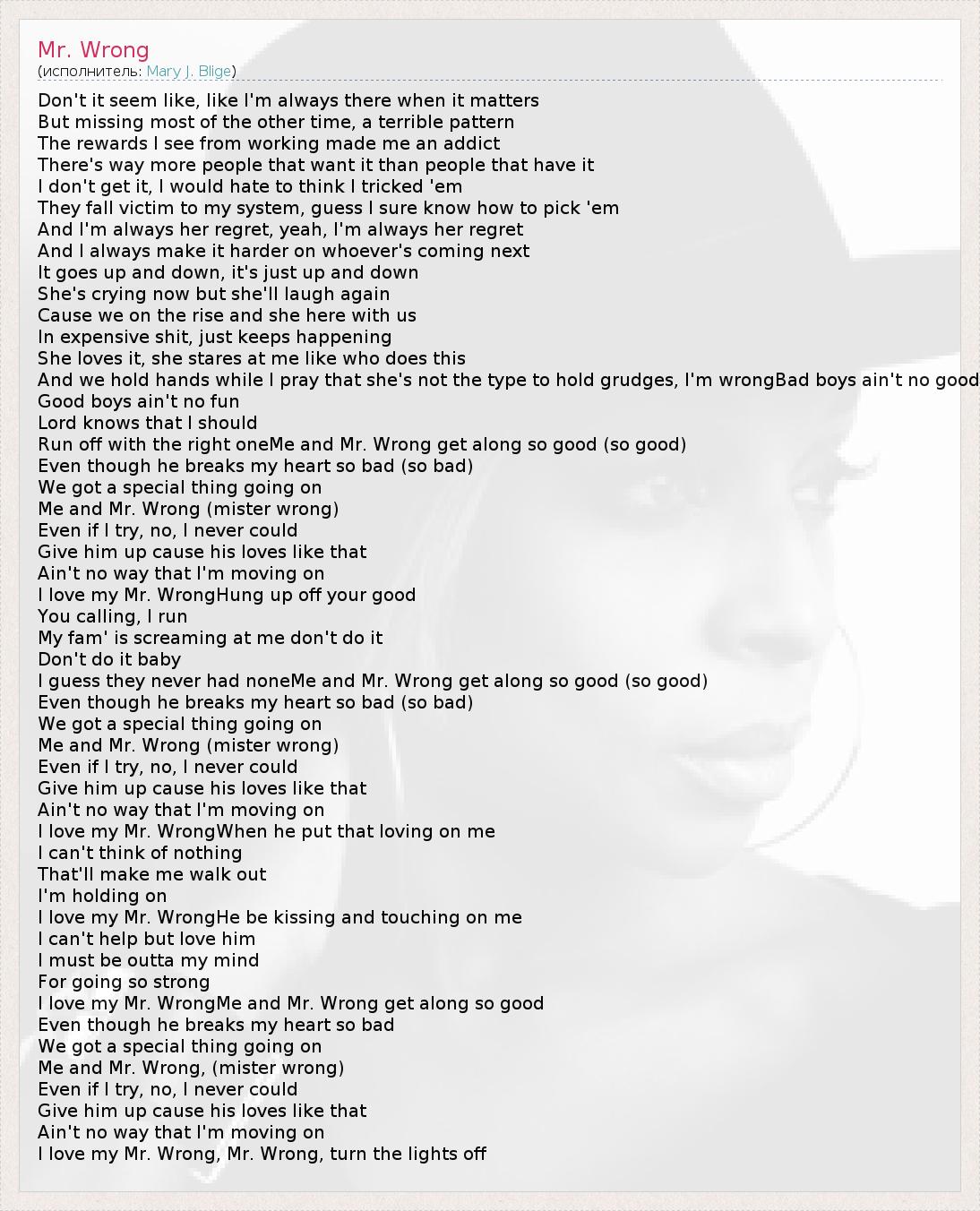 А как ты думаешь, о чем песня "Mr. Wrong" ?