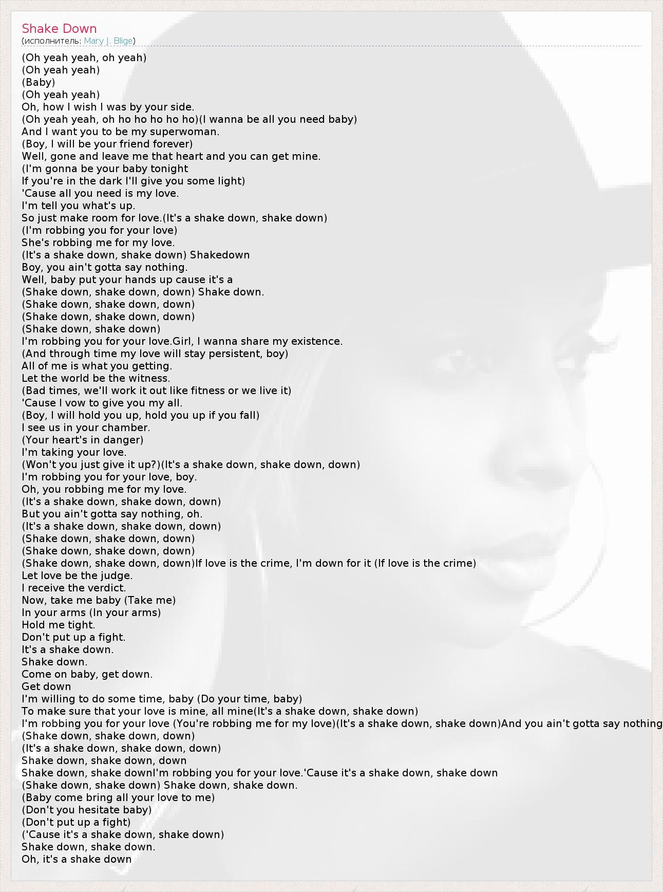 (Won't you just give it up?)(It's a shake down, shake down, down)