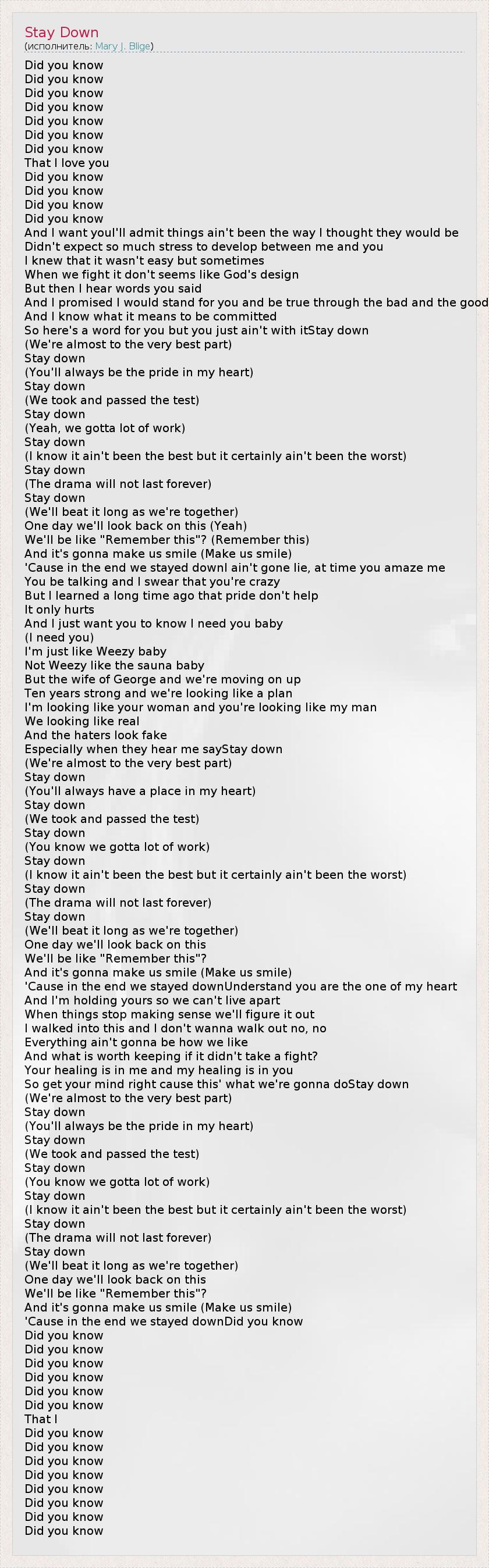 А как ты думаешь, о чем песня "Stay Down" ?