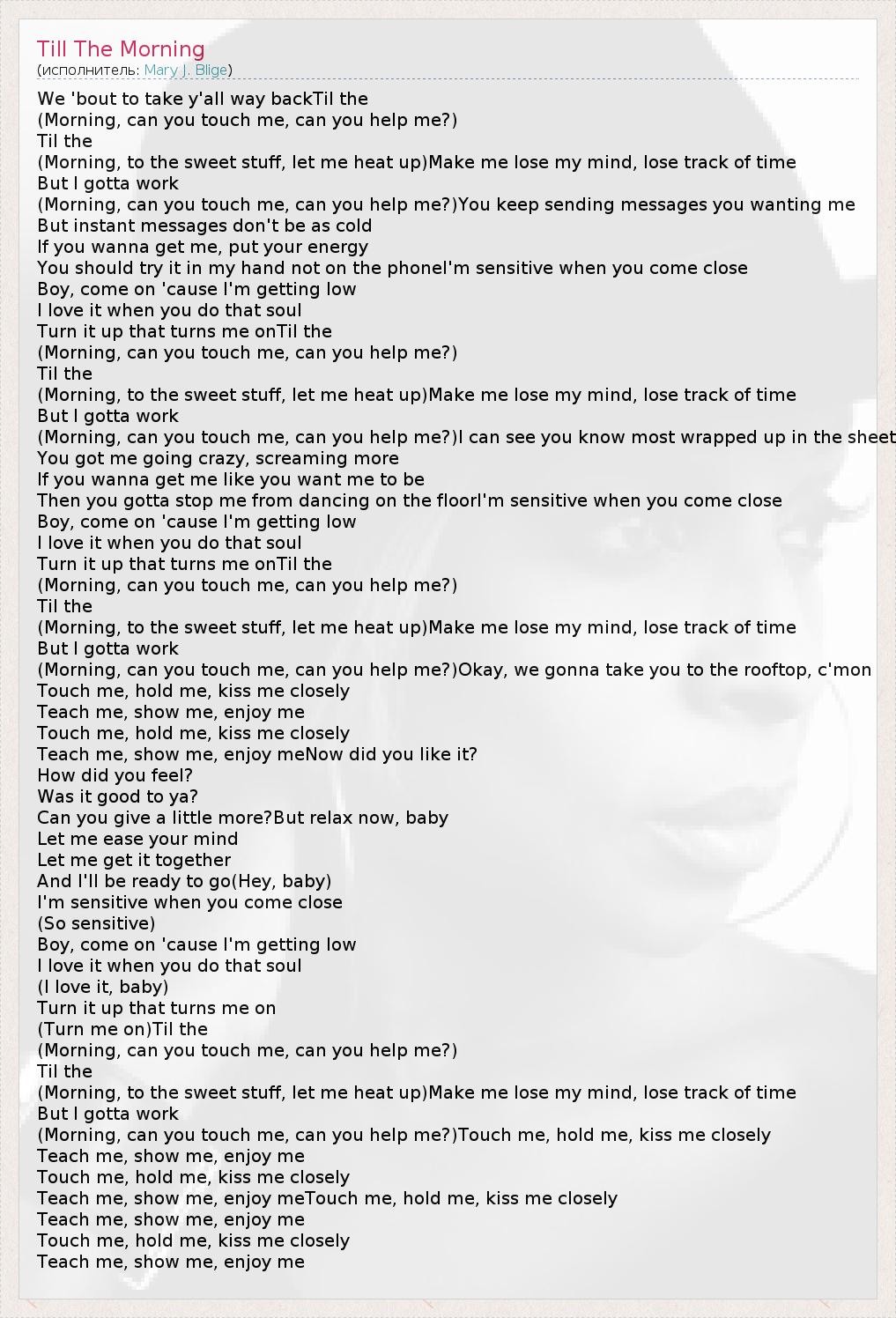 А как ты думаешь, о чем песня "Till The Morning" ?