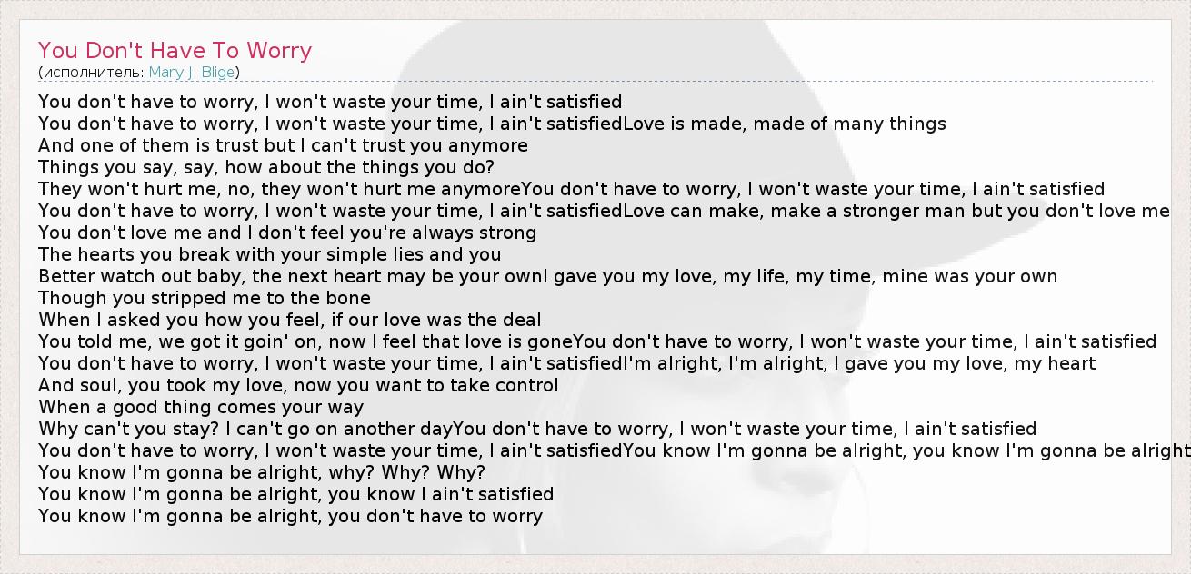 А как ты думаешь, о чем песня "You Don't Have To Worry" ?