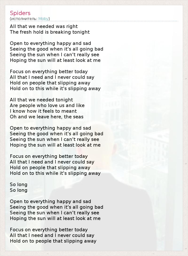 А как ты думаешь, о чем песня "Spiders" ?
