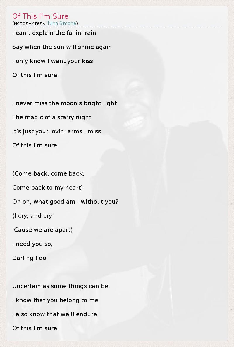 А как ты думаешь, о чем песня "Of This I'm Sure" ?