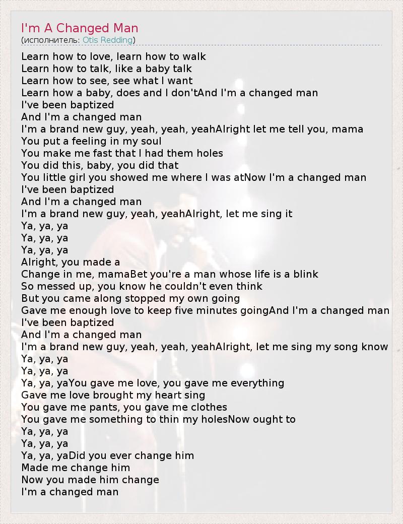 А как ты думаешь, о чем песня "I'm A Changed Man" ?