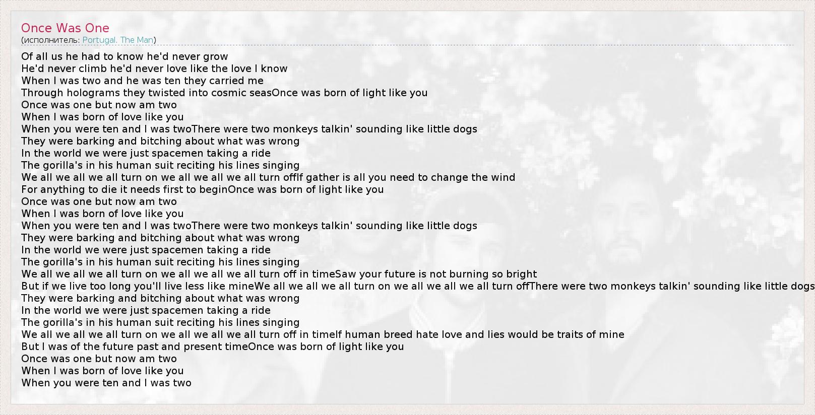 But if we live too long you'll live less like mineWe all we all we all turn on we all we all we all turn offThere were two monkeys talkin' sounding like little dogs