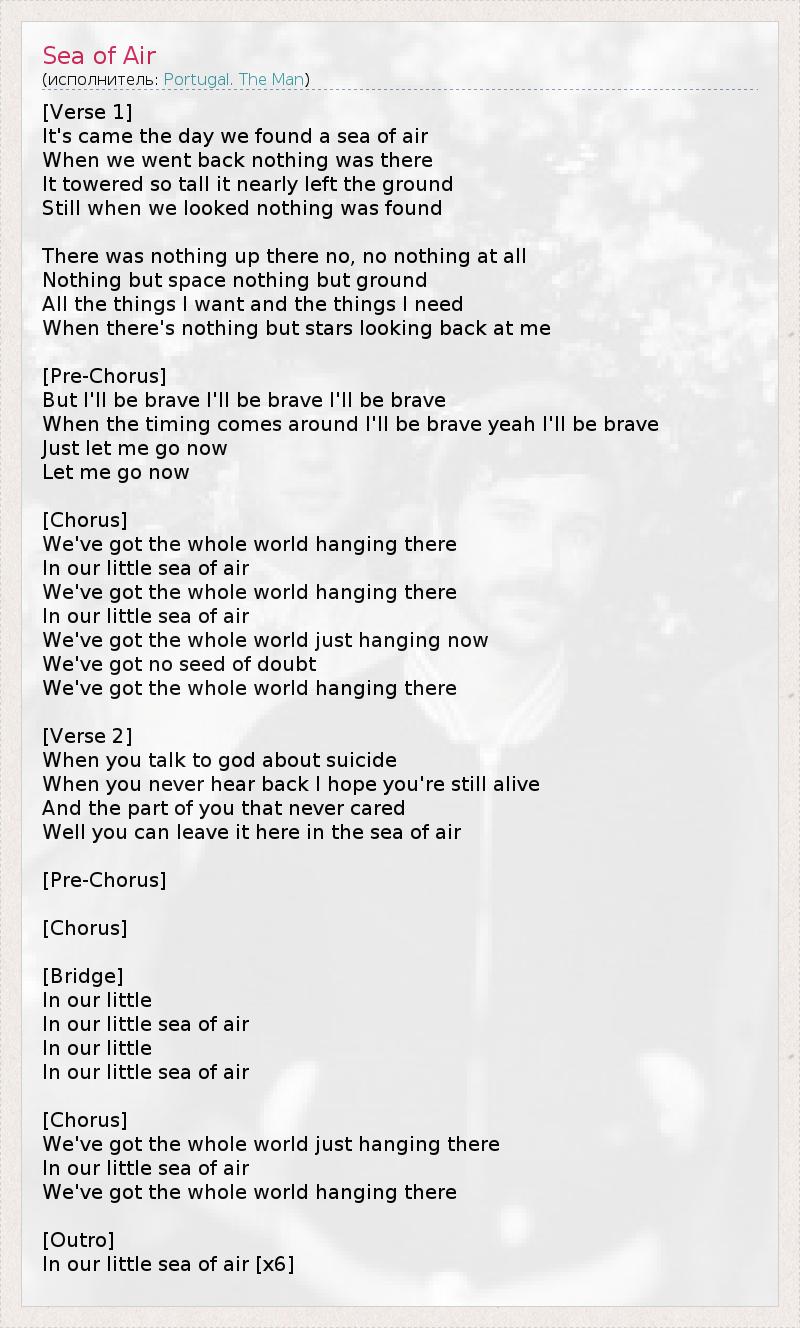 А как ты думаешь, о чем песня "Sea of Air" ?