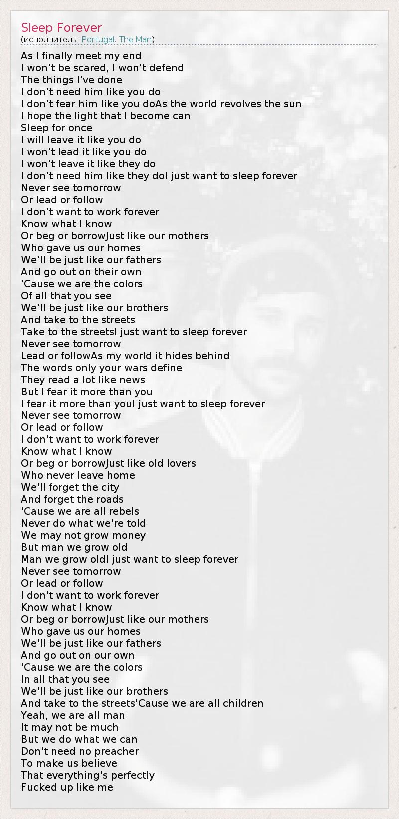 А как ты думаешь, о чем песня "Sleep Forever" ?