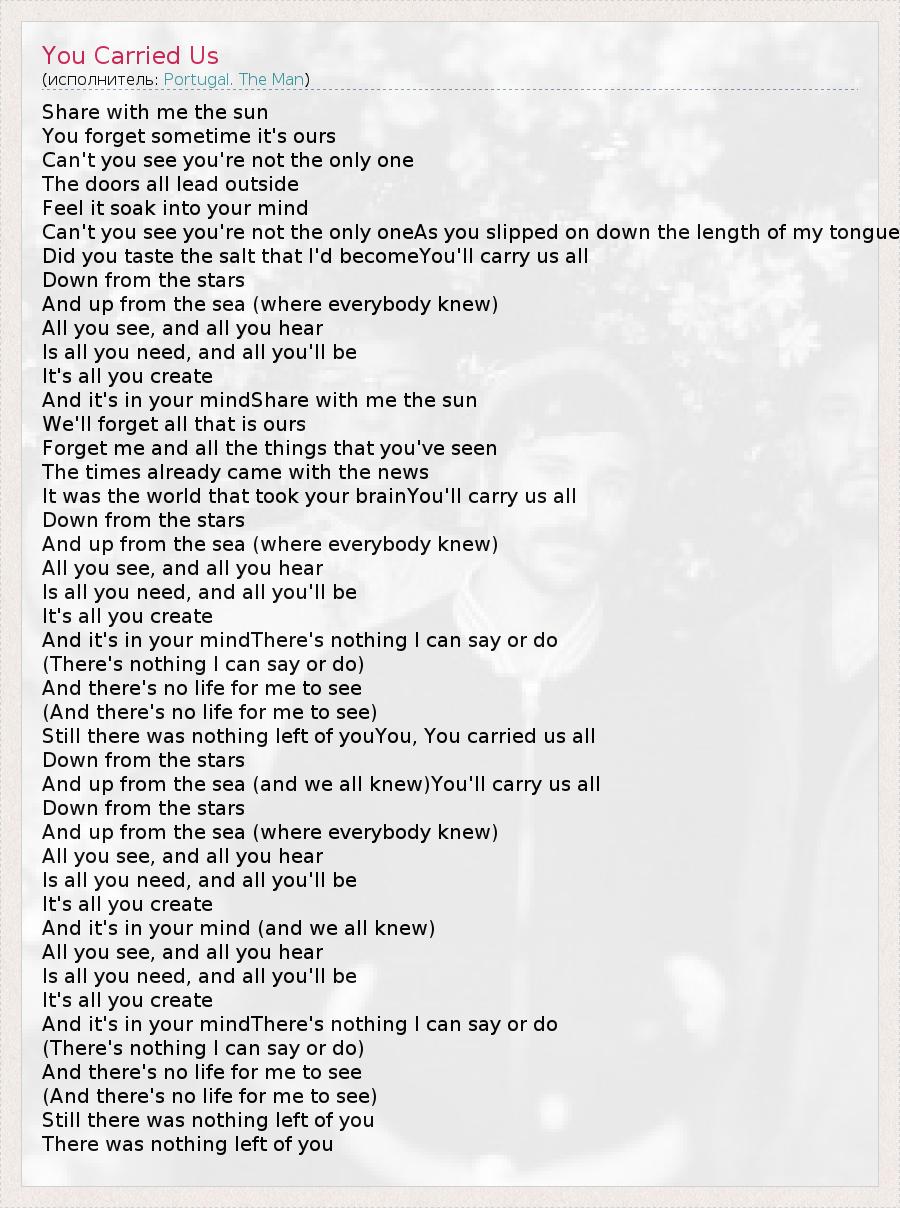 А как ты думаешь, о чем песня "You Carried Us" ?
