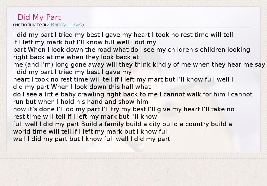 А как ты думаешь, о чем песня "I Did My Part" ?