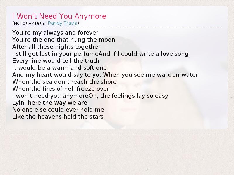А как ты думаешь, о чем песня "I Won't Need You Anymore" ?