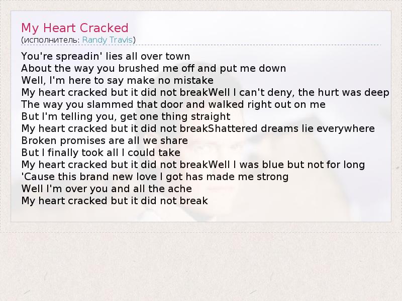 А как ты думаешь, о чем песня "My Heart Cracked" ?