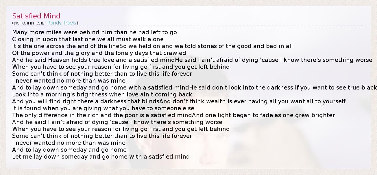 А как ты думаешь, о чем песня "Satisfied Mind" ?