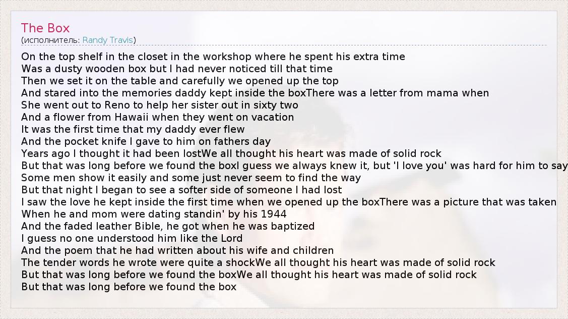 А как ты думаешь, о чем песня "The Box" ?