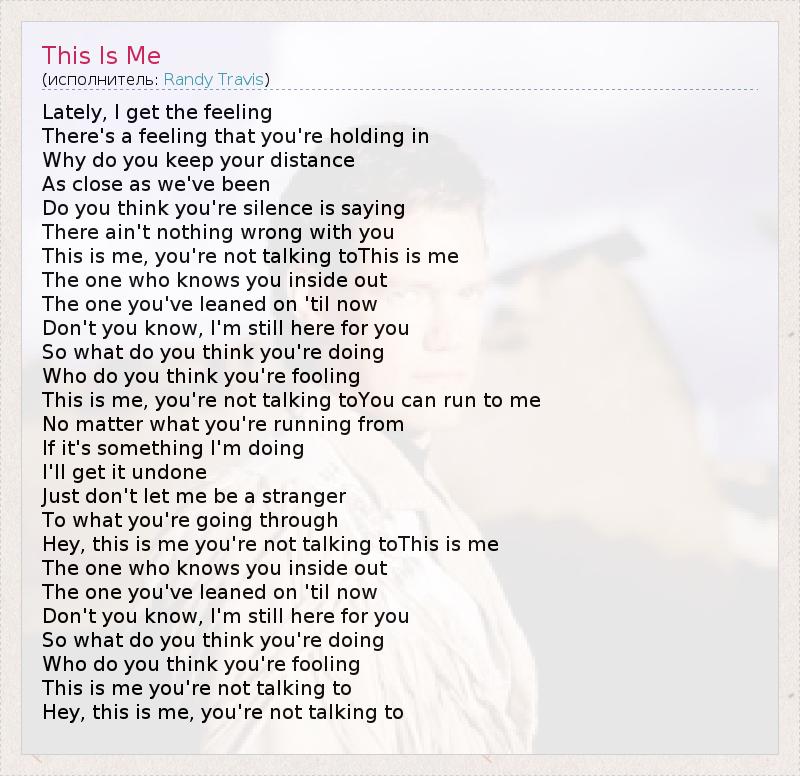 Hey, this is me you're not talking toThis is me