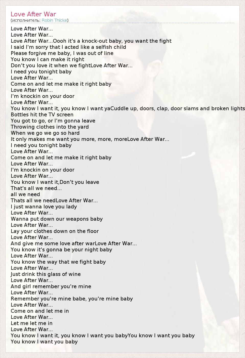 And give me some love after warLove After War...