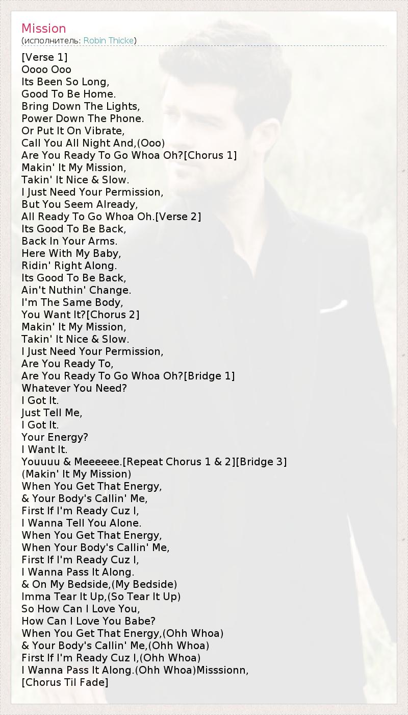 А как ты думаешь, о чем песня "Mission" ?