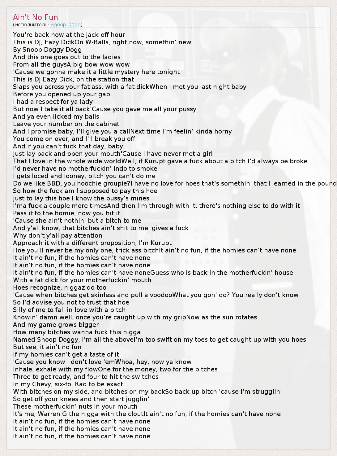 А как ты думаешь, о чем песня "Ain't No Fun" ?