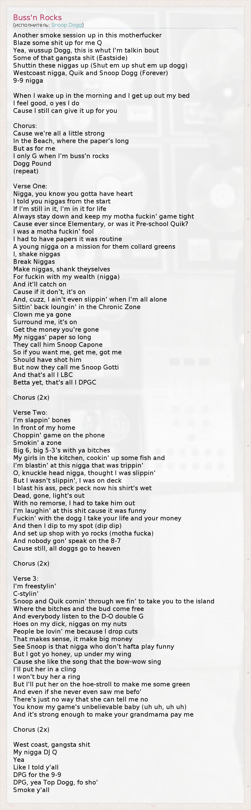 А как ты думаешь, о чем песня "Buss'n Rocks" ?