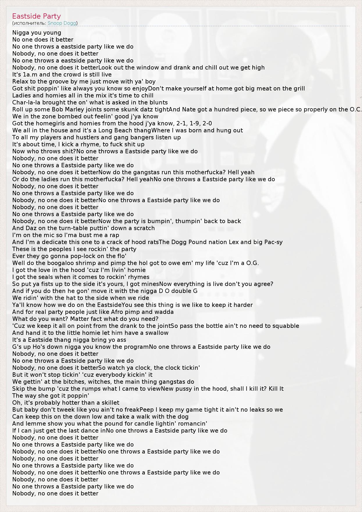 А как ты думаешь, о чем песня "Eastside Party" ?