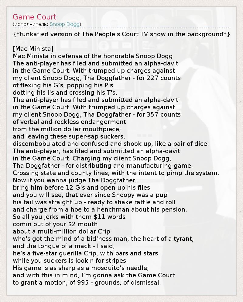my client Snoop Dogg, Tha Doggfather - for 227 counts