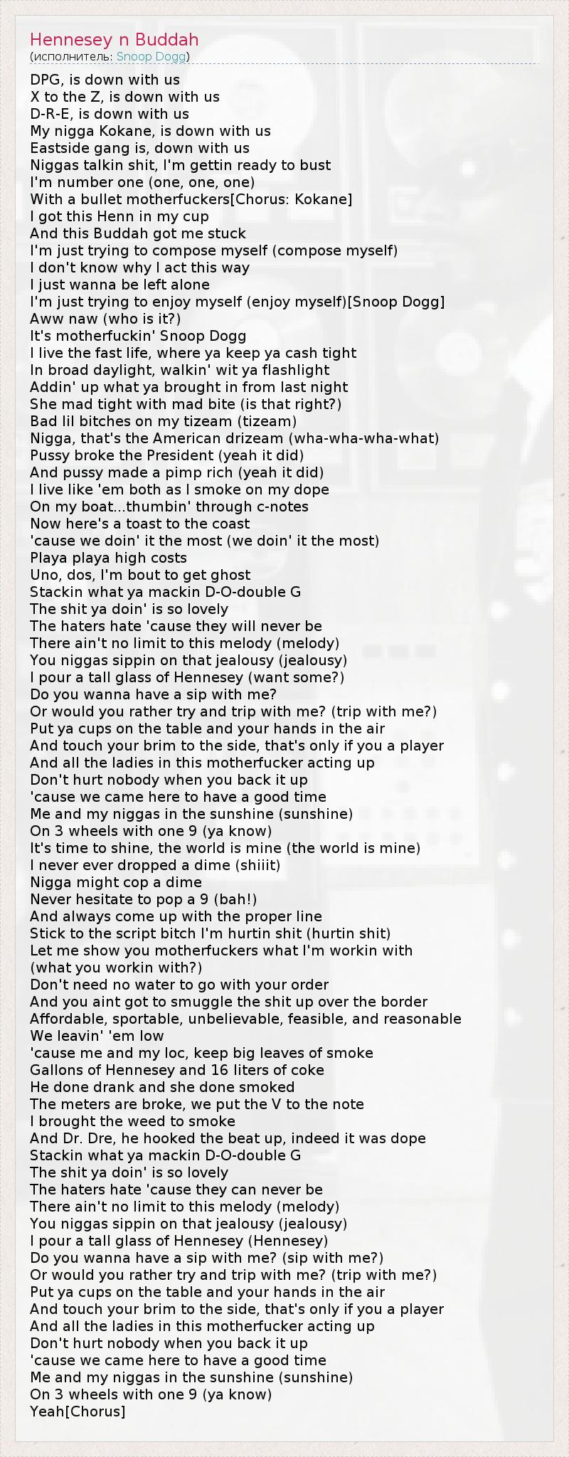 А как ты думаешь, о чем песня "Hennesey n Buddah" ?